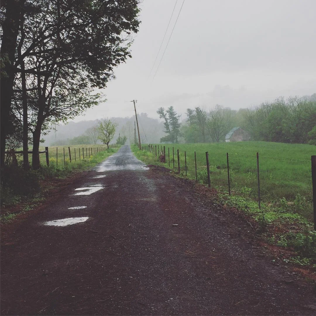 The park did not disappoint. Even in the mist that occasionally escalated to rain, it was a gorgeous hike. I sat in my car by the river and ate then ventured past the gate and into the park, walking past rolling fields and up into the wooded hills where I found the remains of an old burnt-out cabin. Once I felt thoroughly stretched out and damp, I headed back towards the car, snapped a couple photos of the Shenandoah, and set off in search of coffee.